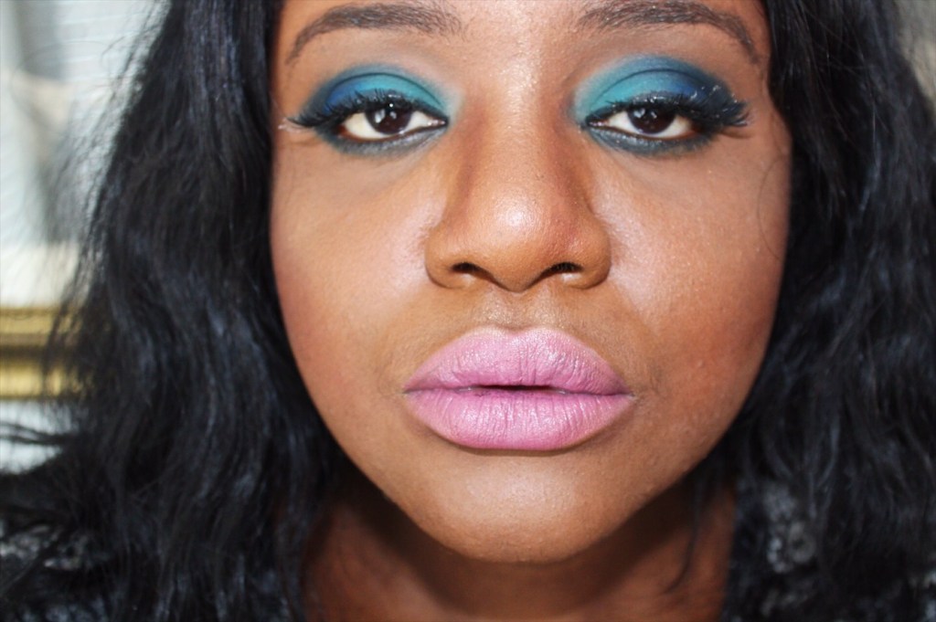 I wanted to do a deep blue cut crease smokey eye. Just a look completely different from what I would typically wear. I’ve always thought blue shadows made me look tarty. But the shades of blue in this palette is a far cry from your mom’s Drugstore 1980’s blue eye shadows. I created my look using the following colours: