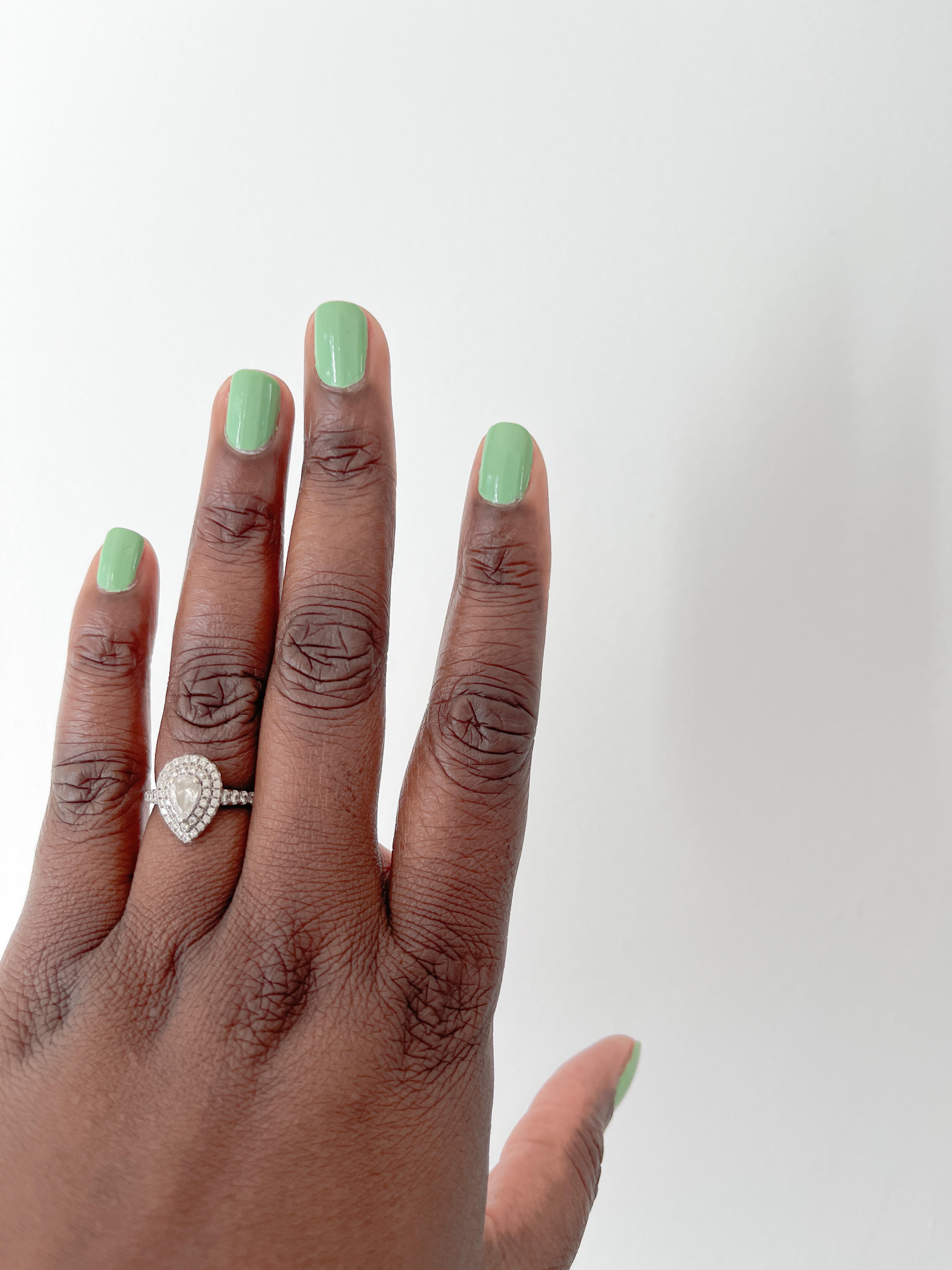 With spring around the corner, it’s hard to miss all the beautiful pastel colours everywhere. A great temporary way to inject some freshness into my life is by changing something minor and quick, like nails.I bought this Essie quick-dry nail polish in the shade “express to impress,” The shade is a beautiful pastel green. It reminds me of pistachio ice cream and the Caribbean sea. I also feel this shade looks great on all skin tones, mainly olives and deep dark skin tones.