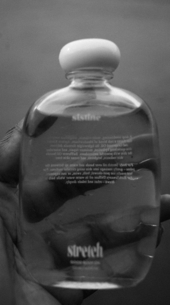 The first thing I noticed about Stretch Good Body Oil is the scent. It’s hard to explain, but it smelled like a calm retreat in the woods, a very pleasing aroma. I absolutely love it! The fragrance notes are;