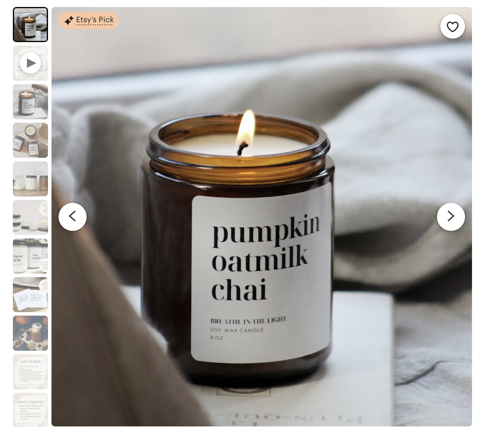 Pumpkin Oat Chai promises to be inviting and adds a touch of elevated style to your decor. The seller also offers personalized touches which is always a win.